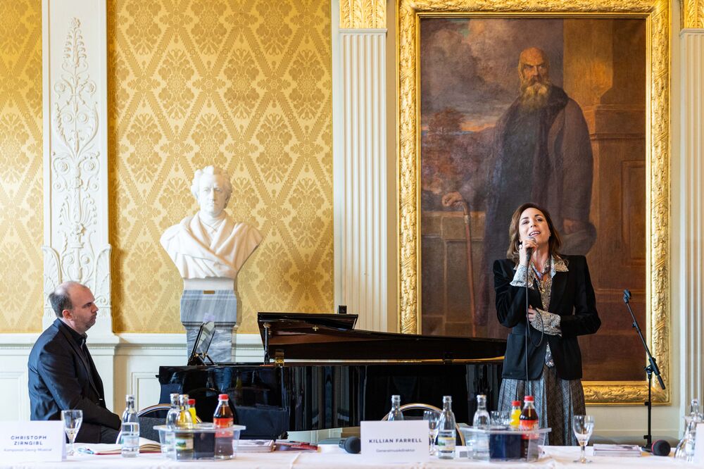 Komponist Christoph Zirngibl begleitet Sophie Berner als "Ellen Franz" am Flügel.