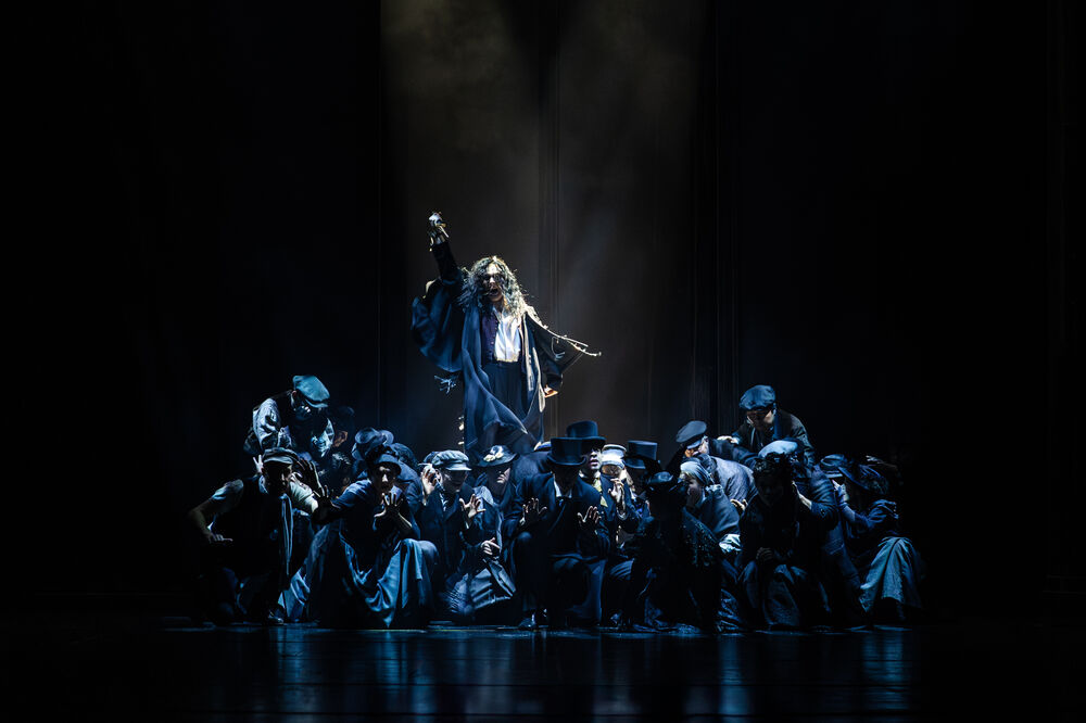 Ein musikalisches Spektakel zwischen High Society, Klerus, Proletariat und Bordell, atemberaubend choreografiert und ausgeleuchtet, in von Karin Fritz geschickt in den Raum gestellten Andeutungen zeitgemäßer Kulissen und in historischen Kostümen von Sven Bindseil – vom Edelstoff der Reichen bis zum grauschwarz gewandeten Volk.